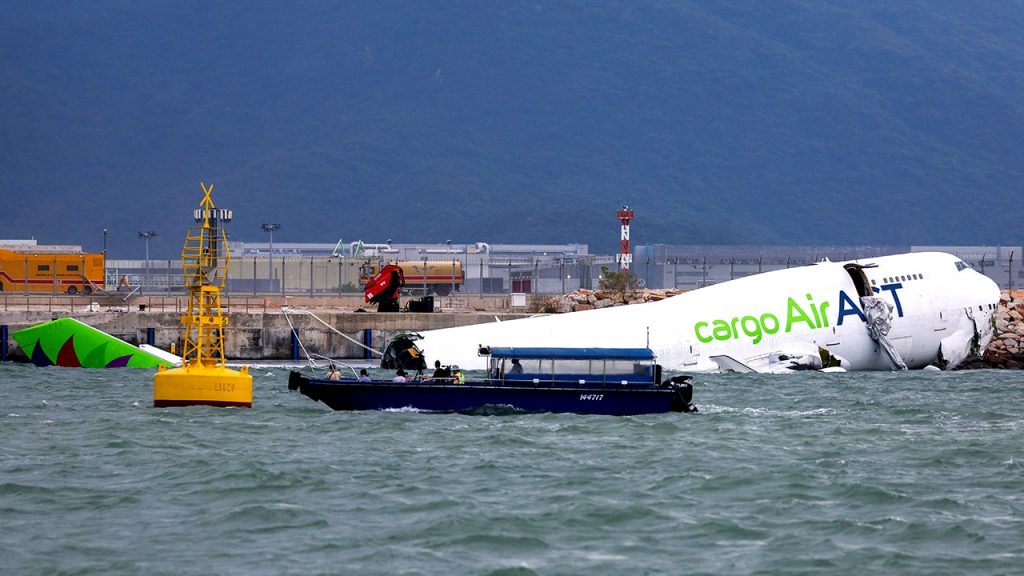 The Boeing 737 – in what was Hong Kong’s worst airport disaster in decades – ended up partly submerged in the water, though all four crew members on board managed to escape unharmed.
