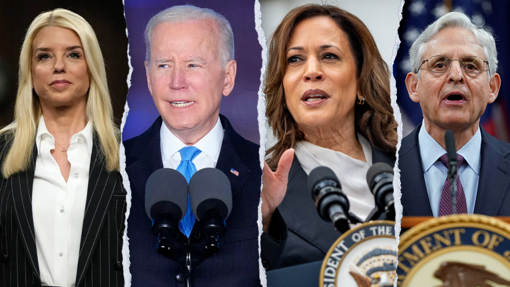 Bondi “saw portraits of Garland, Biden, Harris were still up, and she took the initiative to take them off the walls herself and stack them in the corner,” the official told Fox News.