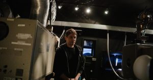 Upstairs at the Aero Theatre in Santa Monica, Sean Baker is talking shop with veteran projectionist Ivan Rothberg as he’s threading the fifth reel of