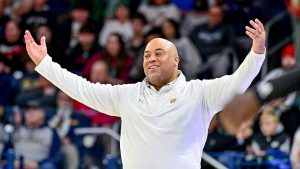 Notre Dame Fighting Irish men’s basketball coach Micah Shrewsberry went on a fiery rant on Sunday defending the team following a 15-point loss to the