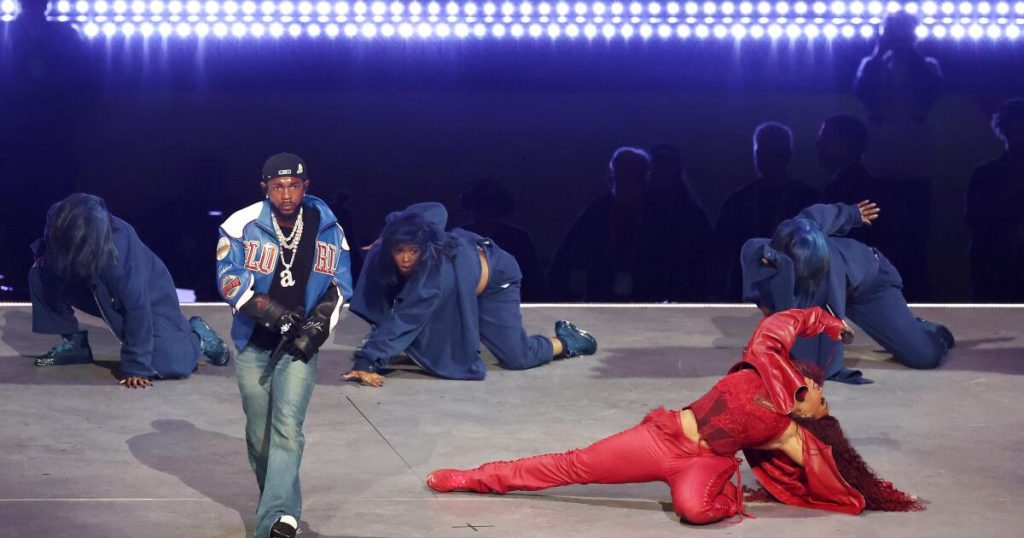 When she and Lamar shared the stage, as on the Oscar-nominated “All the Stars,” “30 for 30” and their respective solo cuts “Doves in the Wind” and “LOVE.,” there was an alchemy between two superfans, their physical presence across the diamond-shaped catwalks reinvigorating this long-beloved music.