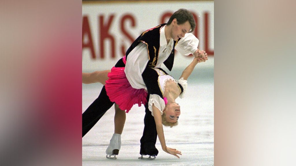 Evgenia Shishkova and Vadim Naumov of Russia perform during free skating in the pairs event of the NHK Trophy International Figure Skating Competition at Nagoya, Japan, on Dec. 9, 1995. AP Photo/Shizuo Kambayashi, File