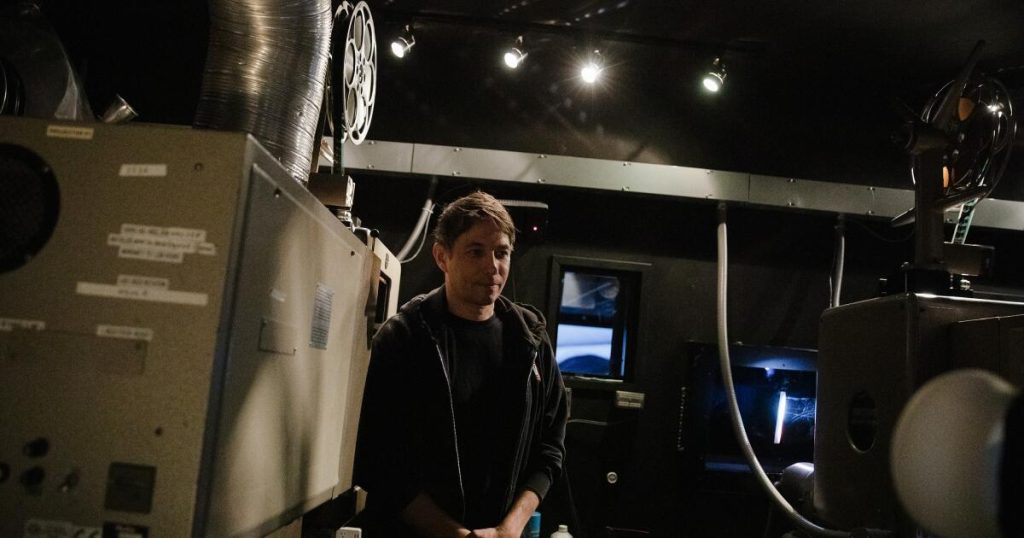 Upstairs at the Aero Theatre in Santa Monica, Sean Baker is talking shop with veteran projectionist Ivan Rothberg as he’s threading the fifth reel of “Anora,” Baker’s Oscar-nominated crowd-pleaser that won top honors from the directors and producers guilds over the weekend.