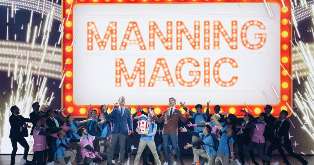 Walt Disney Co.’s TV lineup is packed with big-name talent. But the company kicked off its upfront with an opening number by an unlikely singing duo — former NFL quarterbacks Eli and Peyton Manning.